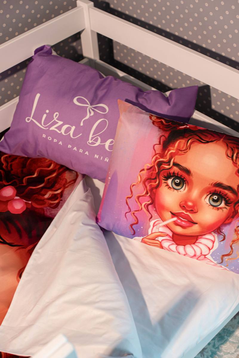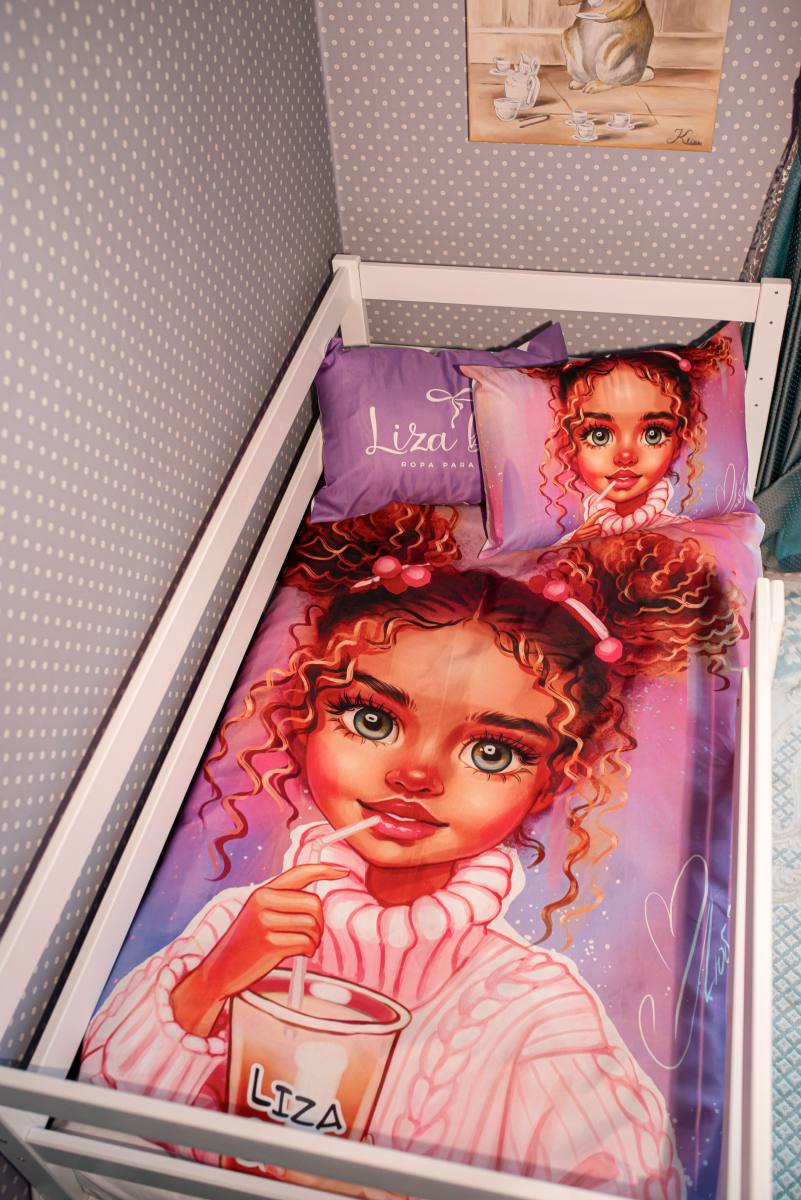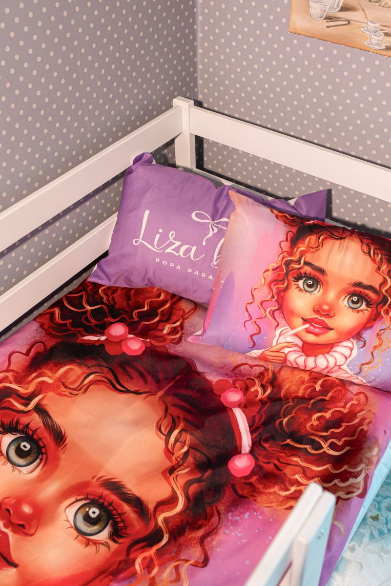 Забудьте о скучных и однообразных расцветках! Наволочка и пододеяльник с принтом Хуаниты станут главным украшением вашей кровати. Подушка с надписью "Liza Bebé" придает комплекту индивидуальность и подчеркивает его эксклюзивность.