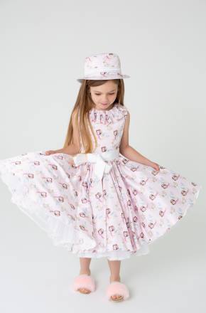 A white hat with dolls. Irreplaceable accessory to complete her image, pearl in our collections – knitwear hat of classical shape with short shadows, with a bow, different colors and pictures to go with Lizabebe wear, size 53 (110-116, 6 years). It’s an important accessory of a little queen, goes ideally with bags and dresses or suits of the same collections.