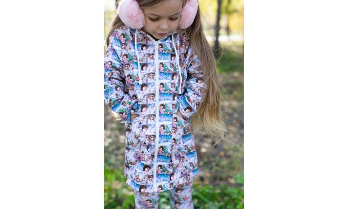 Beautiful bright jacket with topics from our fairytale about Africa´s adventures, here they are, little Africa, her friend chipmunk and that very plane that brought them to North pole! Clothing softshell, well-made zipping and pockets, comfortable hood, wind protection, sizes 2-9 years. The best combination of practicability and a real winter fairytale for the little fairy!