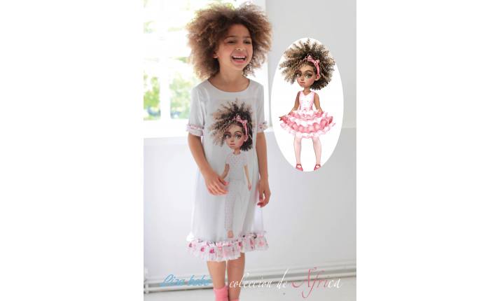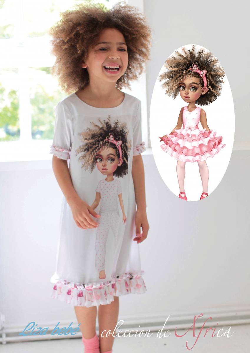 Soft nightgown with short sleeve till the elbow, skirt till the knees, with the exclusive doll from Africa (7 options with different prints), made of silk, sizes 3-12 years. It was designed for your princess to sleep well. It is so light and vaporous that she’ll love it.