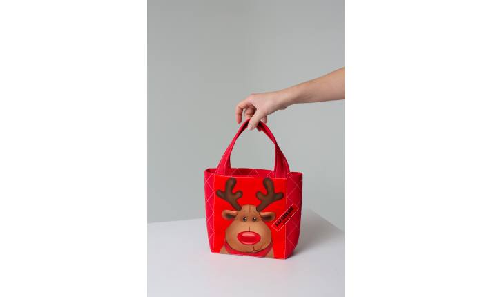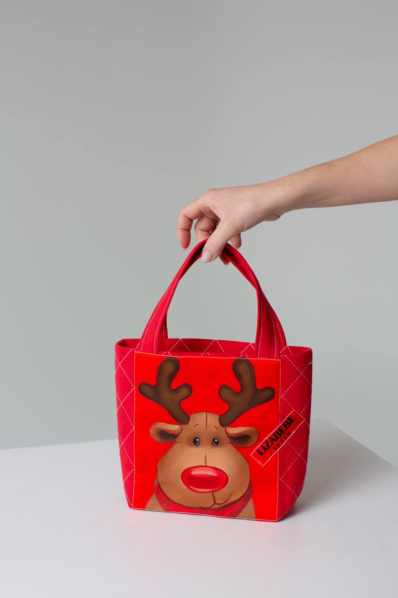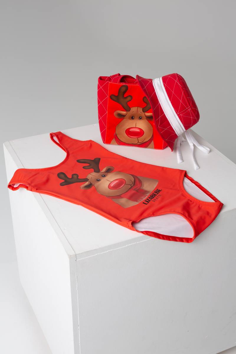 A red bag, square, very nice from de collection Deers, clothing of knit wear with silk printing of the deer. It is good to carry every day and for any case, quite wide and comfortable. It makes a kit with a hat, a swimsuit and a suit.