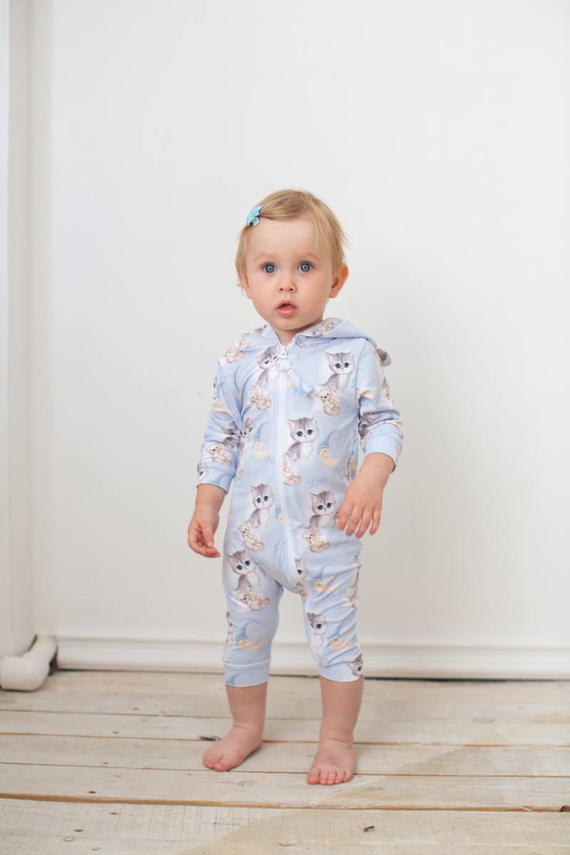 Cute jumpers with hoody with nice ears, clothing coolmax with printings, two original combinations of colors – light blue with kitties for girls and white with puppies for girls and boys, sizes 0-24 months. Comfortable diagonal zipping, excellent quality of the clothing. All the sights will be directed to this enchanting suit. Your baby deserves all the best!