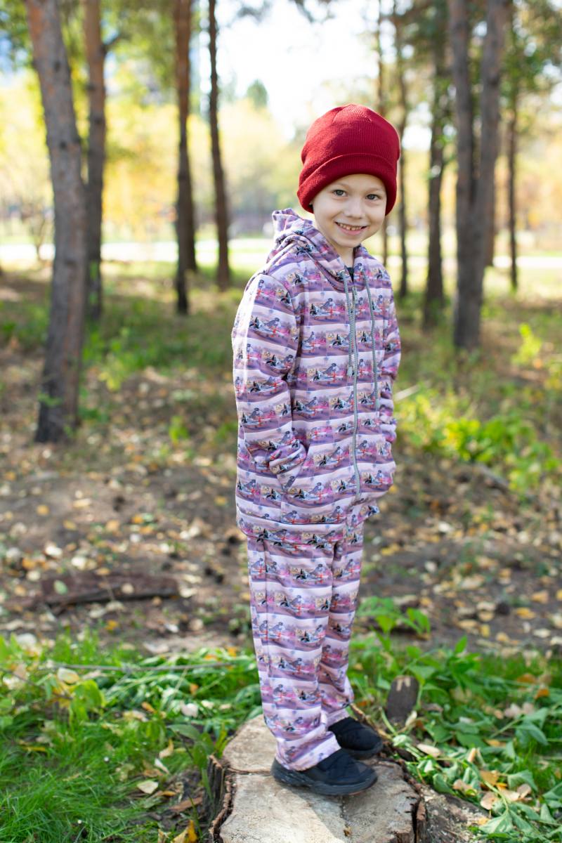 Long-expected collection for boys! Stylish tracksuit with printings of little planes – a real funny cartoon that everyone will look at with interest! Magnificent pallet of soft colors, clothing mollettone, optimal combination of 50% of polyester and 50% of cotton, sizes 104-122. It is neat and suits ideally to the little handsome boy. Boys spend so much time outside that this tracksuit will soon become the irreplaceable piece of clothes in his wardrobe!