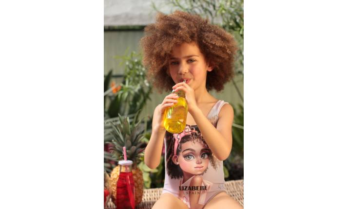 Swimsuit of supplex premium polyester and spandex, pink with a picture of Africa. Note- sizes from 3 years to M size – the two beauties on the beach, mum and her daughter, it’s so nice and nobody else looking like you around!