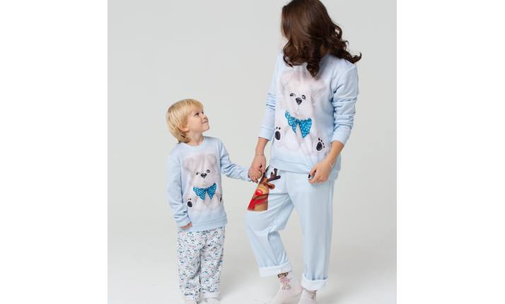 A nice sweatshirt of soft blue color with application of a white friendly puppy for a girl, a boy and mom! Clothing 50/50 polyester+cotton, sizes from 3 years to M. A perfect length, comfortable sleeve, but all that is just one part of advantages of this sweatshirt. It is more important to be close to your child- your children will feel and appreciate that!