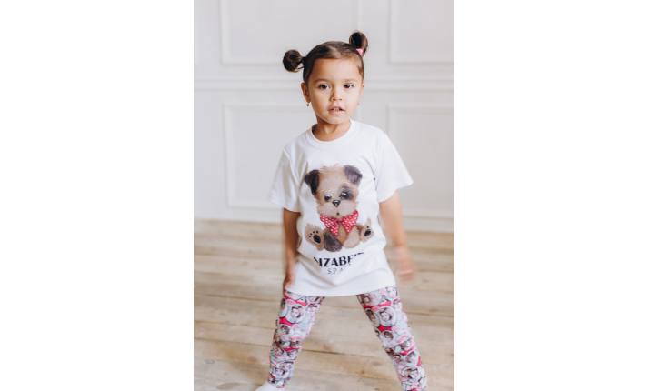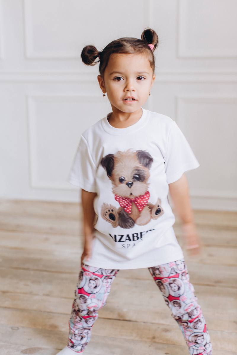 A comfortable T-shirt with application of a little brown puppy of the clothing combination of polyester and cotton, sizes 3-12 years. Simple, fashionable and with good taste. It goes well with a light jacket of the same clothing – a stylish garment for a nice walk. A T-shirt doesn’t have to be boring, our slogan is – giving them joy every day!