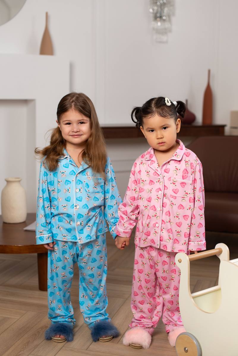 Бұл жұмсақ және жайлы пижамалар ұйықтап, ояну үшін өте қолайлы. Ашық қызғылт реңк және иттер мен жүректердің сүйкімді баспасы жайлы және жылы атмосфера жасайды.