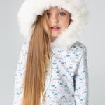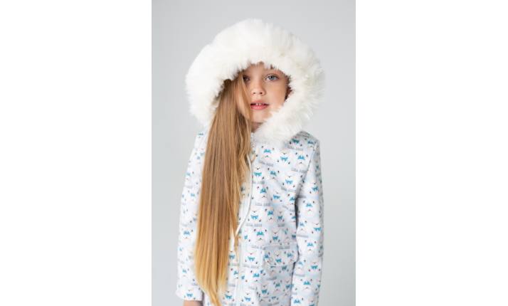 Chaqueta blanca otoño-primavera con prints de perritos de tela repelente al agua softshell poliéster, con cremalera, con bolsillos pegados y piel falsa en la capucha, tallas 3-12 años. La ventaja principal de esta chaqueta es su practicidad. En esta chaqueta lo la molestarán a su peque ni el frio ni la humedad. Se senrirá abrigada y comfortable. Pero es el caso cuando la alta calidad se combina con estilo y belleza!