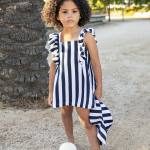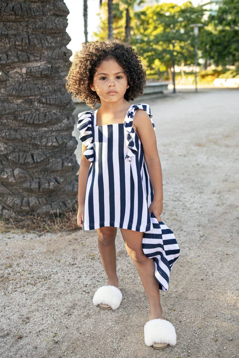 Vestido infantil ligero y elegante con diseño de rayas estilo marinero, ideal para paseos de verano, vacaciones y sesiones de fotos.