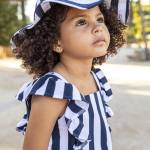 Vestido infantil de verano a rayas con sombrero a juego