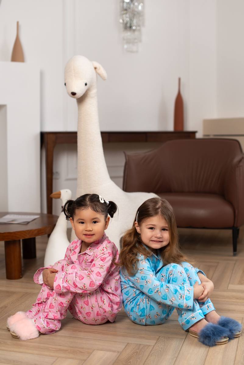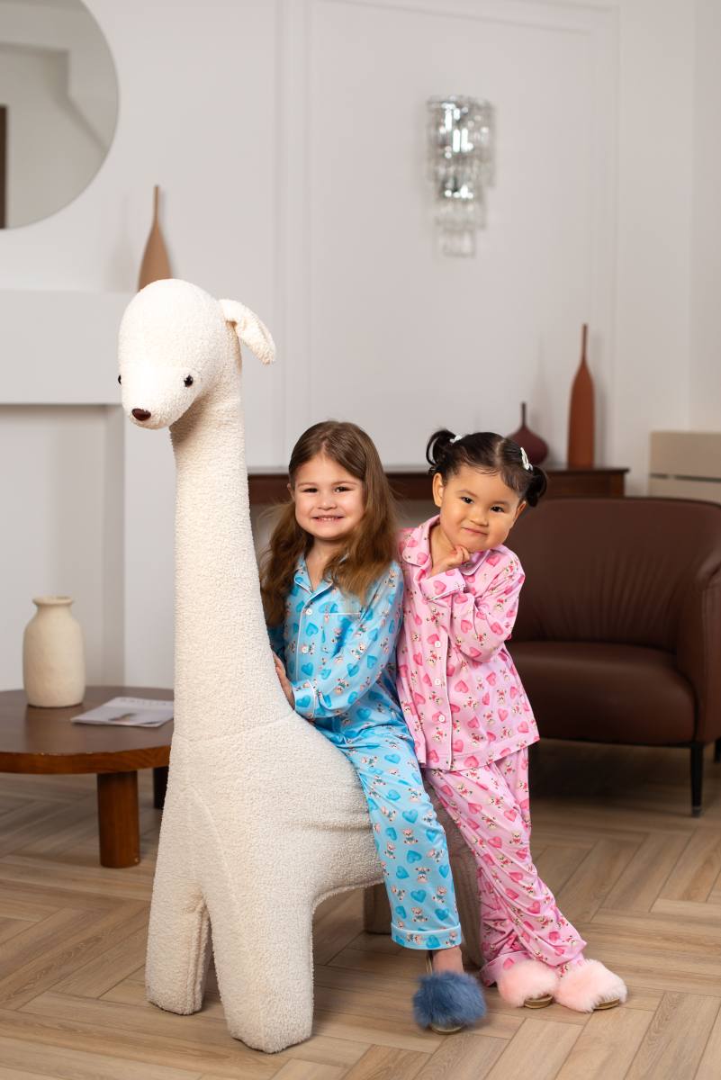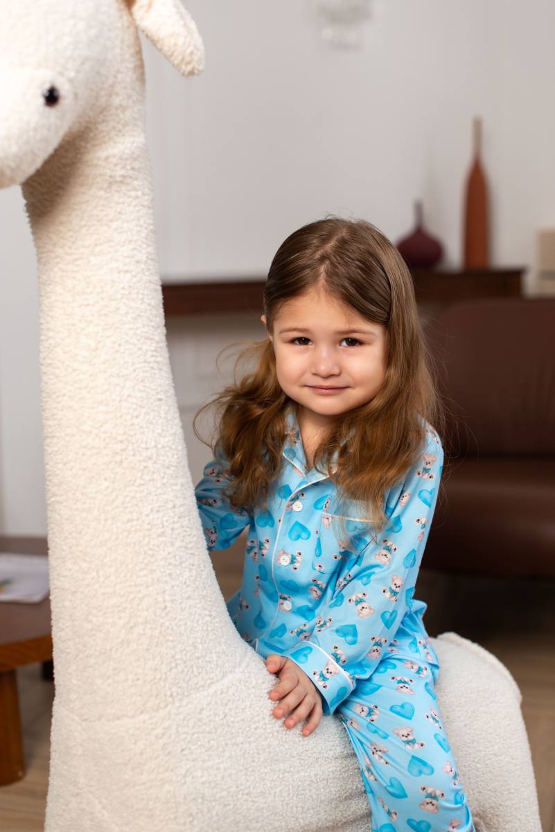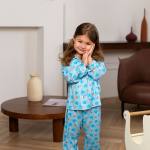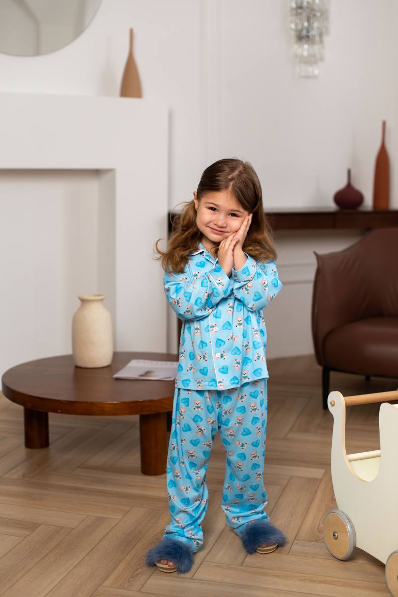 Бұл жұмсақ және жайлы пижамалар ұйықтап, ояну үшін өте қолайлы. Ашық көк реңк және иттер мен жүректердің сүйкімді баспасы жайлы және жылы атмосфера жасайды.
