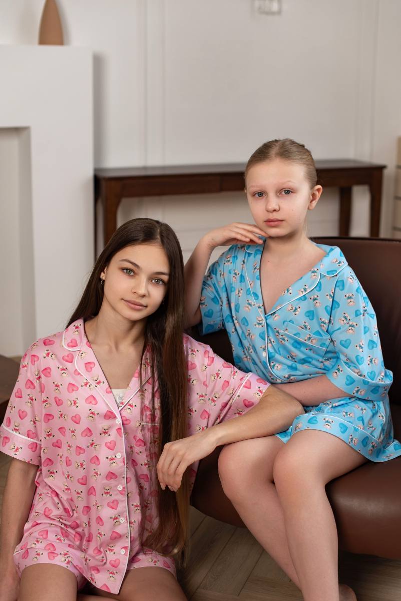 Нежная и уютная пижама, в которой так приятно засыпать и просыпаться. Мягкий голубой оттенок, милый принт с собачками и сердечками создают атмосферу уюта и тепла.