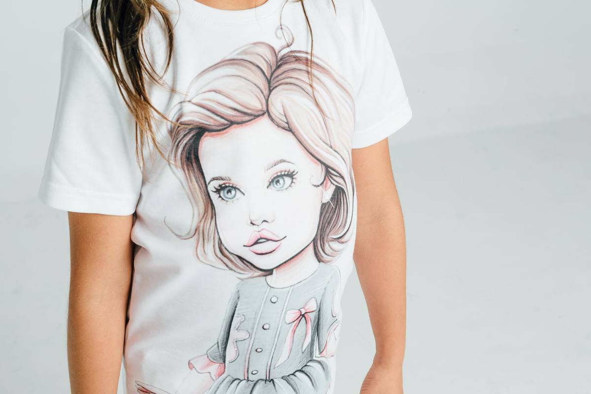 Футболка с большой аппликацией куклы с большим выбором цветов – их четыре, на любой вкус. Ткань 50/50 полиэстер хлопок, размеры 104-146. Прекрасно подойдет к сумке с такой же аппликацией. Эта футболка украсит мир вокруг вас и подарит девочке хорошее настроение на весь день. Эта кукла была создана специально для вашей дочки, она почувствует себя единственной!