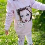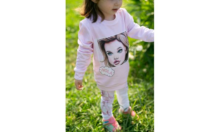 Кофта с длинным рукавом (свитшот) с аппликацией эксклюзивной куклы брэнда, в двух цветах- голубом и розовом, ткань 50/50 полиэстер хлопок. Идеальная длина и высокое качество. Она очень удобная и, кроме того, очень индивидуальная, ты будто становишься героине мультфильма, и вот эта куколка уже говорит тебе Привет…