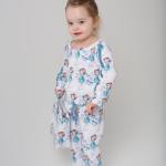 Костюм белый с принтами фирменной куклы в зеленом – прекрасное украшение гардероба вашей маленькой леди, сочетание красоты и удобства. Кофта и штанишки, из неопрена, размеры 3-12 лет. Ее летнее настроение в каждом сантиметре ткани!