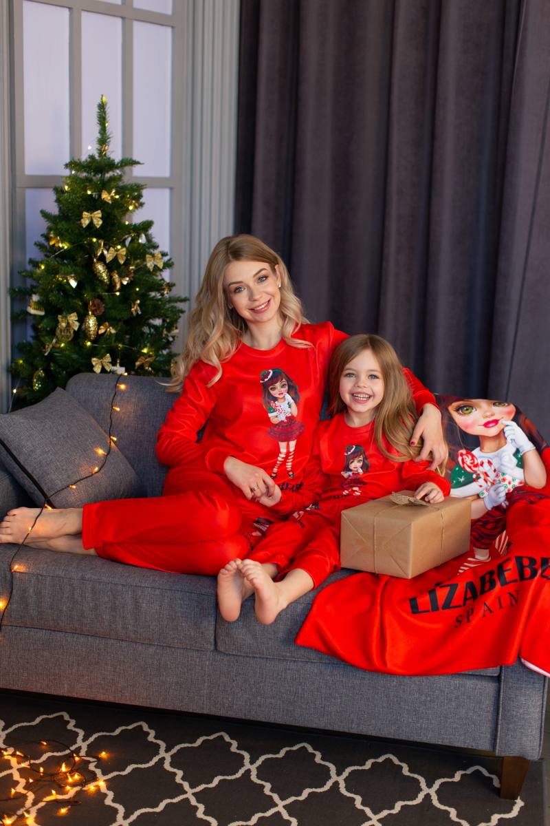 Комфортный и практичный костюм из трикотажа, двойной сэндвич – полиэстер и хлопок, с аппликацией в виде куколки на кофте и штанишках. Он такой ярко- красный, производящий впечатление! Размеры от 3 лет до размера М – для мамы и дочки! Очарование, которое нам удалось найти в простых вещах!