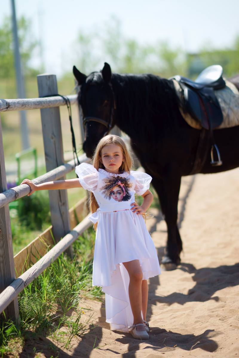 Роскошное белое платье Африка с потрясающей отделкой, 100% ручная работа, из шелка, юбка удлиненная сзади, что добавляет этому наряду королевский шарм, размеры 3-12. Изящный короткий рукав и бант на талии, воздушная и легкая юбка. Это настоящая жемчужина коллекции, созданная для вашей маленькой принцессы.
