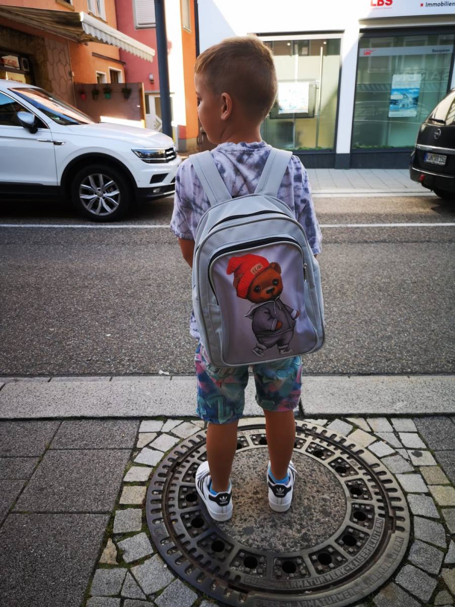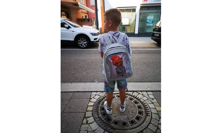 Отличный рюкзак нежного серого цвета из коллекции Мишки, с принтом в виде мишки в сером костюме и красной шапке, ткань 100% полиэстер. В этом рюкзаке продумано все, оптимальный размер – он вместительный и не громоздкий, удобный карман для мелких принадлежностей, качественные ручки. Такой мишка будет только у вашего ребенка, ведь он специально создан нашими дизайнерами. Отлично сочетается с серым костюмом из коллекции Мишки.